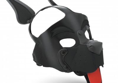 • Pup Hood: This pup hood has large eye holes for increased visibility and a strap down the scalp that holds the big, perky ears in place and shows off your hair. The muzzle protrudes just like a canine and has a red, panting tongue hanging out!